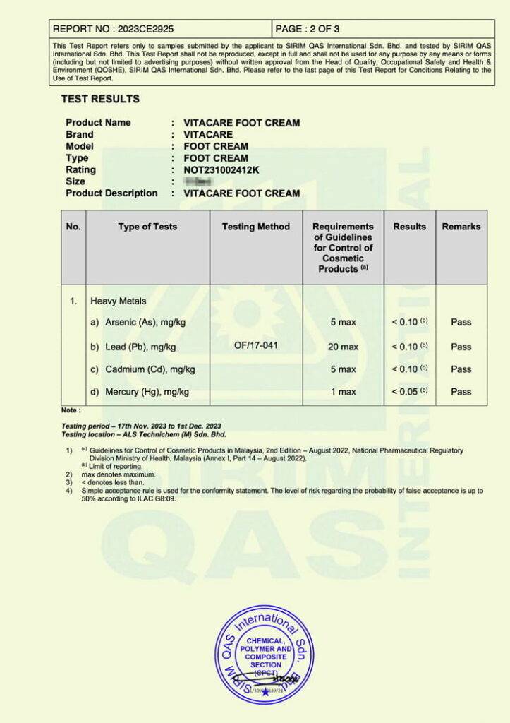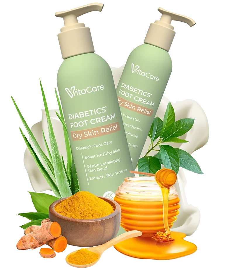 Hampir 80% Pesakit Diabetis Mengalami Komplikasi Masalah Kulit Kering,Bersisik,Gatal Dan Merekah. Aloe Vera Dan Ceramide dalam Vitacare Akan Memastikan Kulit Kaki Pesakit Sentiasa Dalam Kondisi Lembap dan Sihat